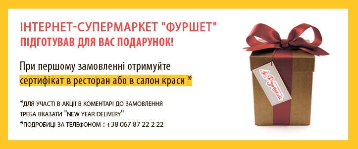 Дорогие друзья! В связи с открытием интернет магазин "Фуршет" дарит покупателям предновогодние скидки от 10 до 50%! Успейте воспользоваться уникальной возможностью и дополнительно получить подарочный сертификат в ресторан или салон красоты. Предложение действует только для Киева. *Для участия в акции в коментарии к заказу нужно указать "NEW YEAR DELIVERY" *Подробности по телефону +38 067 87 22222 http://zakaz.furshet.ua/ |