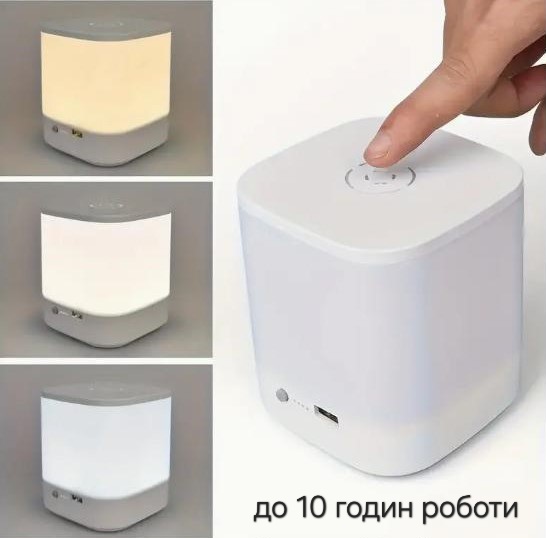 Світлодіодний нічний світильник з сенсорним керуванням, з USB-зарядкою, 3-кольорове навколишнє освітлення, з наддовгим терміном служби акумулятора та функцією power bank.
