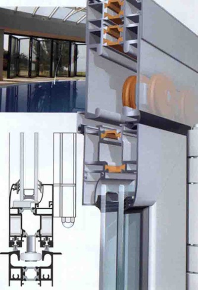 Это система складывающихся дверей «гармошка» с терморазрывом.