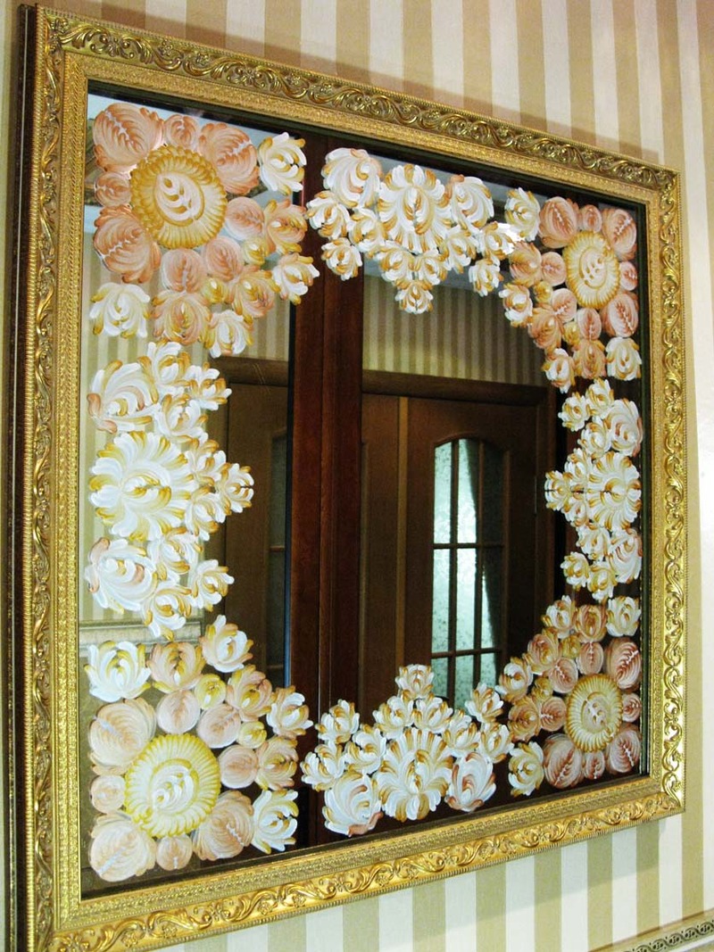 С того времени как зеркало появилось в жизни человека оно вошло во многие ее сферы и стало неотемлимой частью .Само по себе зеркало несет в себе не только чисто практическую функцию но и эстетическую .Являясь частью интерьера зеркало с росписью дополняет его и обогащает .Усилия художника в первую очередь направлены на создание великолепной и неповторимой личной среды .Сейчас мы предлагаем авторский уникальный продукт не имеющий аналогов .Изделие с росписью может быть в открытом и закрытом виде (как стеклопакет) .С росписью изготавливаются зеркала ,витражи (стеклопакеты) ,стеклянные столы ,стеклянные фартуки(стеклопакеты) для кухни ,стеклянные столешницы(стеклопакеты) с росписью ,стеклянные ступени(стеклопакеты) с росписью ,перила ,полы ,стены ,перекрытия ,лифтовые шахты ,терассы ,мансарды ,козырьки ,навесы ,перегородки ,стеклянные двери ,фасады ,витрины ,декоративные элементы .