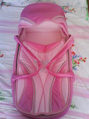 Особого внимания заслуживает обивка из эксклюзивного материала, обеспечивающая ребенку идеальную температуру окружения и вентиляцию воздуха независимо от погоды!