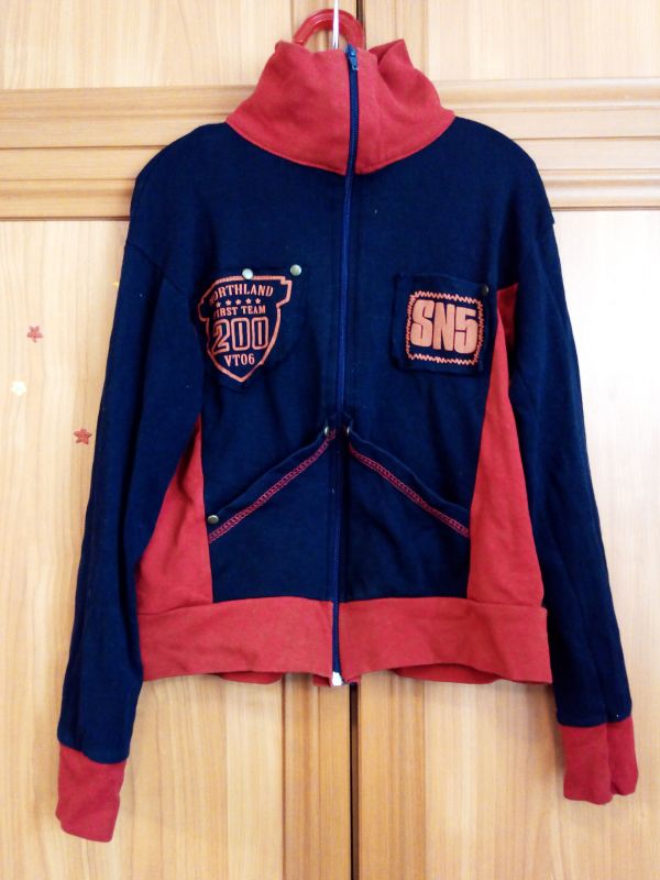 Черная спортивная кофта с красными вставками. Есть три кармашка. Два боковых и один нагрудный. В идеальном состоянии. Цена - 20 грн. |