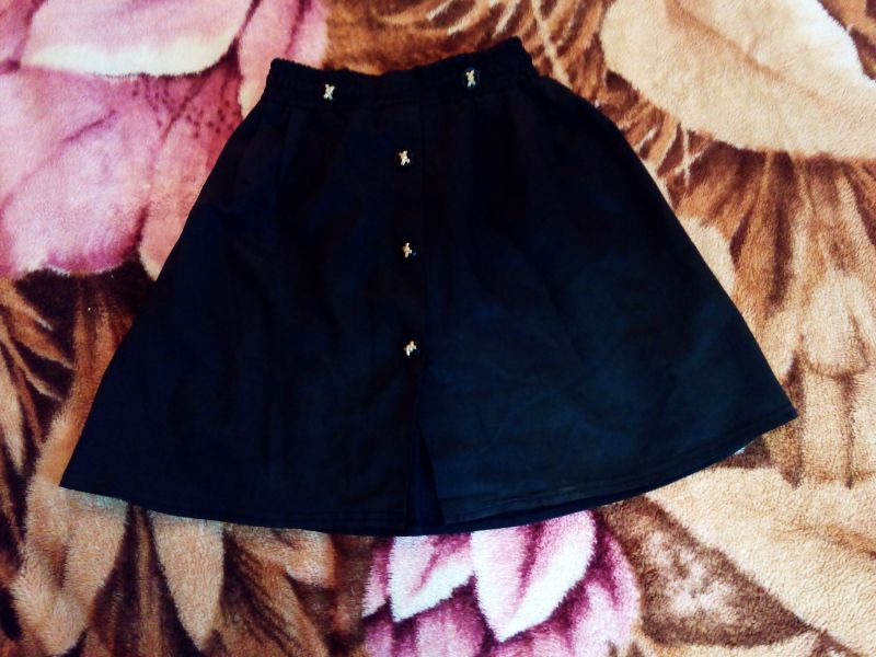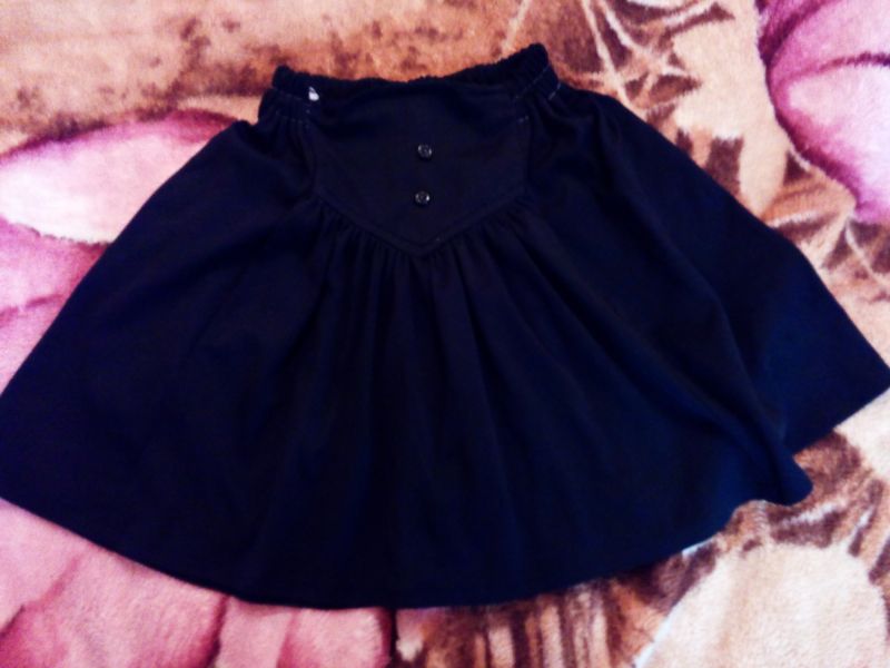 5. Красивая чорная юбочка. На резинке. Спереди две маленькие пуговички для красоты. Замеры: талия 44 см вокруг, длина - 34 см. Цена - 3 грн.