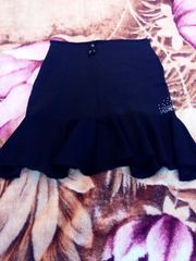 4. Чорная вузкая юбочка. Снизу расклешена. На поясочке которым можно регулировать под свою фигуру. Размер М. Замеры: талия 62 см вокруг, длина - 45 см. Цена - 10 грн.