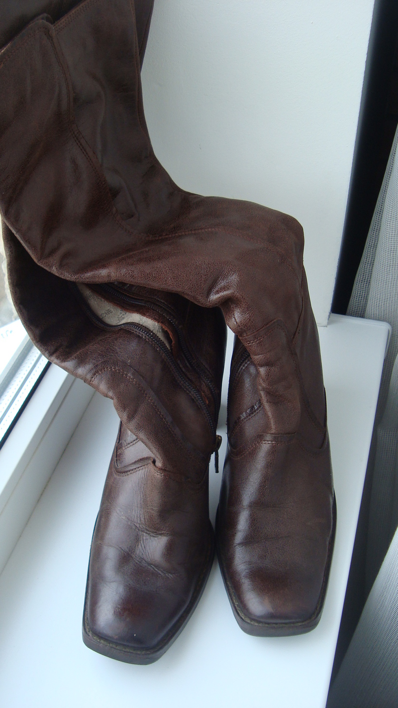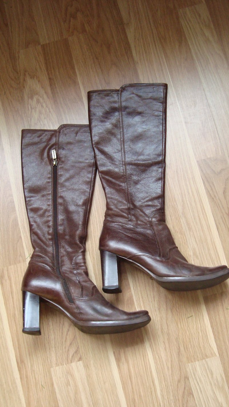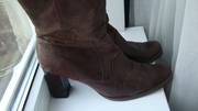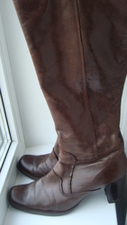 Демисезонные сапожки испанского бренда « ELCHE COLLECTION » из кожи , р.36-37 . Без замера стельки, так как носок удлинённый и зауженный, стопа до конца носка не войдёт. На подошве 36 размер, носила на свой 37 узкий. Объём голенища – не больше 35 см. !!!!Высота каблука – 8см. Есть набойки, профилактика. Внутри приятный материал под велюр. Состояние смотрите на фото. Цена – 80 грн. |