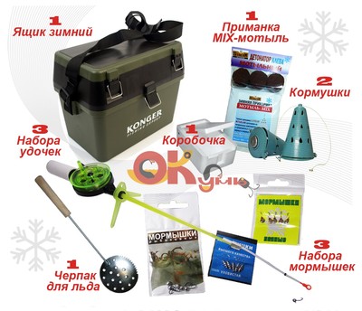 Ловля карася в зимний период, занятие, которое требует усидчивости и терпения. Набор «Зимний карась» поможет новичку освоить тонкости ловли, а бывалому рыболову выгодно обновить свой арсенал. Комплект: Ящик зимний «Konger №2» (350х230х290) Готовые удочки, 3 шт. оснащены: - мягкий кивок - леска 0.12 мм Металлический черпак для удаления шурпы в лунке Кормушки зимние, 2 шт. Зимняя прикормка Stream «Мотыль Микс» Коробка для мотыля Наборы мормышек: - «дробинка» 5 шт. - «личинка» 5 шт. - «глазок» 5 шт. |