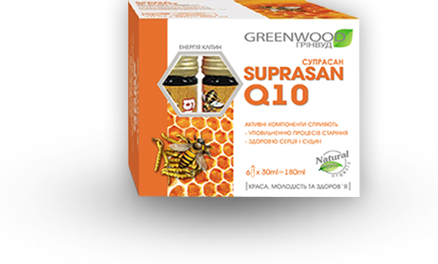 Кофермент Q10 - это естественное вещество, которое вырабатывается и присутствует во всех клетках организма человека, наполняя их энергией и оберегая от разрушения. К сожалению, выработка кофермента Q10 в организме после 20 лет начинает снижаться и уже к 60 годам его содержание уменьшается на 50%, зачастую серьезно ослабляя организм, провоцируя различные болезни. Возрастает риск возникновения проблем с сердечнососудистой системой, деструктивными изменениями других органов. В инновационном препарате СУПРАСАН Q10 содержится концентрированный кофермент Q10 с наиболее действенными растительными компонентами, усиливающими взаимодействие друг друга. Уникальная технология экстрагирования, жидкая форма СУПРАСАНА Q10 обеспечивает оптимальное всасывание и максимальный эффект. Как показали многочисленные исследования, концентрированный кофермент Q10 содержащийся в СУПРАСАНЕ Q10, является уникальным антиоксидантом, проникающим в митохондрии - "энергетические станции" клеток, где сжигается кислород и образуется энергия для дальнейшей жизни. Для того чтобы митохондрии не испытывали недостатка энергии, нужен кофермент Q10, являющийся своеобразной "искрой", которая их активизирует, заряжая энергией все клетки нашего организма. Учены считают, что при дефиците кофермента Q10 функции жизненно важных органов ухудшаются, и в первую очередь - сердца. Ведь оно нуждается наибольшем количестве кофермента Q10, чтобы генерировать огромную энергию, необходимую для работы. Благодаря улучшению сердечной деятельности и укреплению иммунной системы увеличивается продолжительности жизни, замедляя процесс старения.