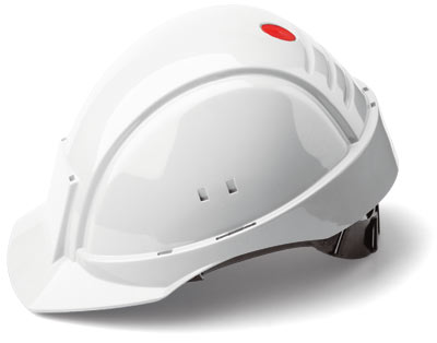 Легкая защитная каска из ABS пластика устойчивого к воздействию ультрафиолетового излучения, с вентиляционными отверстиями. Каска снабжена УФ-индикатором, отображающим степень износа каски. Нижний выступ корпуса каски увеличивает жесткость конструкции и защищает от усилия бокового сжатия. Соответствует требованиям европейского стандарта EN 397 и дополнительным требованиям в отношении защиты от боковой деформации, брызг расплавленного металла и эксплуатации в условиях низких температур (от -30ºС). Защитные свойства: конструкция каски предусматривает максимальную амортизацию и равномерное распределение ударных нагрузок. Цвет: белый, Вес: 340 грамм; размер 54-62 Стандарт EN 397:1995 |