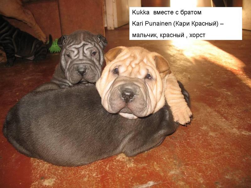 Продаются щенки шар-пея, рожденные 19.12.2009, хорст, от титулованных родителей. Родословная КСУ, клеймо, привиты по возросту. Черный мальчик -Kou Musta, Красный мальчик -Kari Punainen Предложение для любителей миниатюрных шар-пеев!!! Девочка, черный хорст - Kukka Pieni. Малыши милые, активные, безаллергенные 050-9410128(оксана), 050-5201480(сергей) |