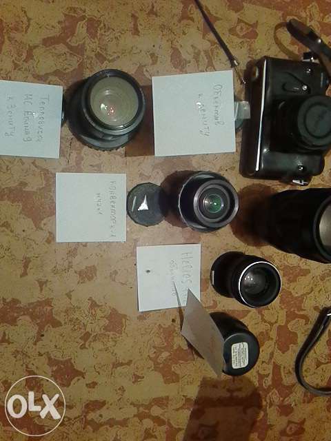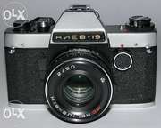 Фотоаппарат Киев 19 Гелиос 50 с блендой к нему широкоугольный объектив МИР 24 Н 235.