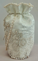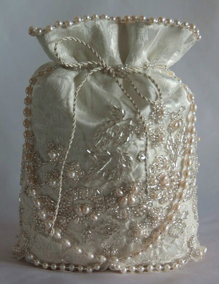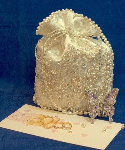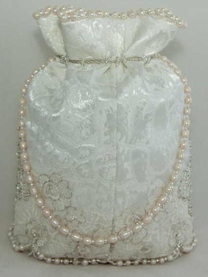 Эксклюзивная жемчужная сумочка ручной работы из жаккардовой ткани цвета слоновой кости и французского кружевного полотна. Рисунок кружева подчеркивает мягкий перелив натурального жемчуга, который издавна считается символом брака, процветания и благополучия. Ювелирная вышивка натуральным жемчугом и чешским серебристым бисером и стеклярусом. Сумочка Высота 22см, ширина -16см, ширина по боку – 9 см, подкладка – белый атлас. Сумочка имеет внутренний кармашек. Благородный жемчуг для изысканных невест. Эта сумочка займет достойное место в коллекции Ваших ювелирных украшений! |