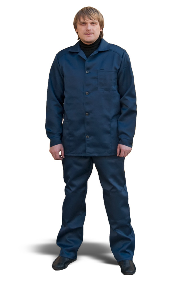 Костюм рабочий (куртка брюки) ткань грета.Цвет темно-синий. Данный костюм состоит из собственно куртки и брюк, относящихся к разряду рабочих. Рабочая куртка представляет собой следующее: прямой силуэт, застежка на пуговицах расположена по центру, сама куртка является удлиненной. Располагает тремя накладными карманами, один из которых нагрудный, остальные нижние.Брюки: штанины с наколенниками, застежка центральная с использованием пуговиц, пояс обладает шлевками, предназначенными для использования ремня. Также есть накладные карманы спереди. |