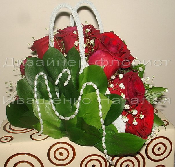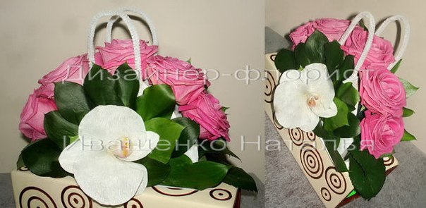 Букет сумка из живых цветов под заказ в Киеве, широкий выбор аксессуаров и цветов для Вашего заказа. Декоративная сумочка под заказ от 250грн. |