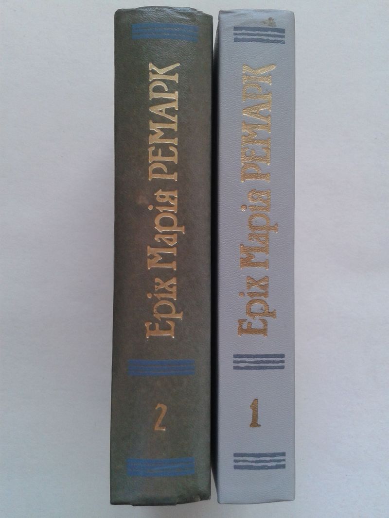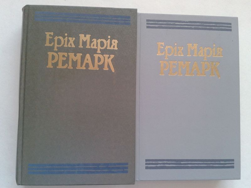 Еріх Марія Ремарк – Твори в двох томах. – Київ: Дніпро,1986. Т.1: На західному фронті без змін; Три товариші.–573с. Т.2: Тріумфальна арка; Чорний обеліск.–768с. |