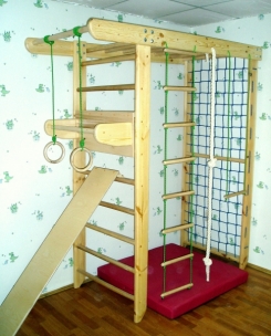 Спортивный уголок 210см высотой с руколазкой 145см длиной, с сеткой и игровыми элементами.