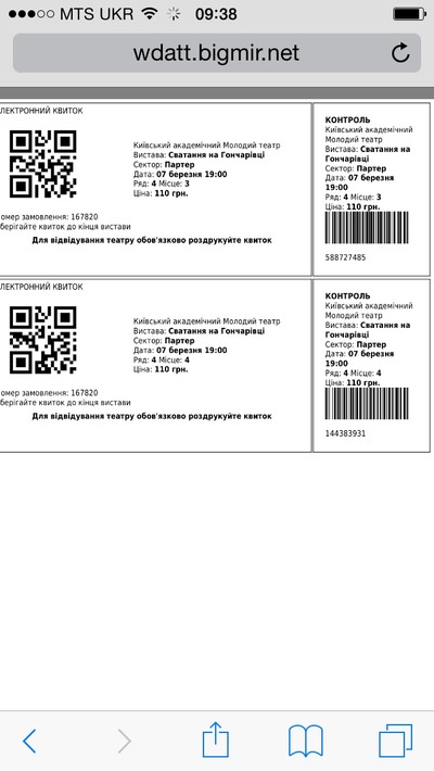 Продам, предлагаю - частное лицо: Билеты в театр, Украина, Киев и областьКод: 475919 Создано: 03-03-2015 15:04