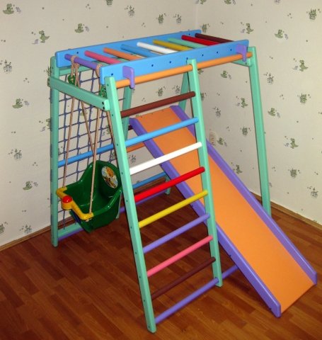 Кроме того, спортивный комплекс для детей «Малыш» прекрасно способствует укреплению организма ребенка, используя его энергию в нужном направлении. Для детских спортивных уголков компания использует в комплектации лучшие шведские стенки.