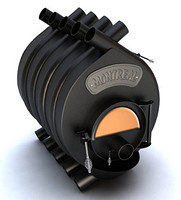Буллер выпускается шести типоразмеров, которые отличаются друг от друга мощностью, и, соответственно, объемом отапливаемого помещения. Печь имеет две камеры. В первой происходит тлеющее горение топлива, а во второй, за счет подачи в нее через инжекторы дополнительного воздуха, дымовые газы, которые в обычных печах выбрасываются в атмосферу, дожигаются. Оригинальная конструкция делает эту печь почти идеальным теплообменником. Холодный воздух отапливаемого помещения поступает в нижние отверстия труб, обвивающих топку, а из верхних отверстий выходит горячий воздух, температура которого достигает 80 - 120 градусов, а в режиме интенсивного горения превышает 250 градусов. За счет постоянного перемешивания воздуха в отапливаемом объеме у Вас не возникает ощущения скопления тепла около печи. Печь может применяться для отопления помещений объемом от 100 м3. до 1 300 м3.