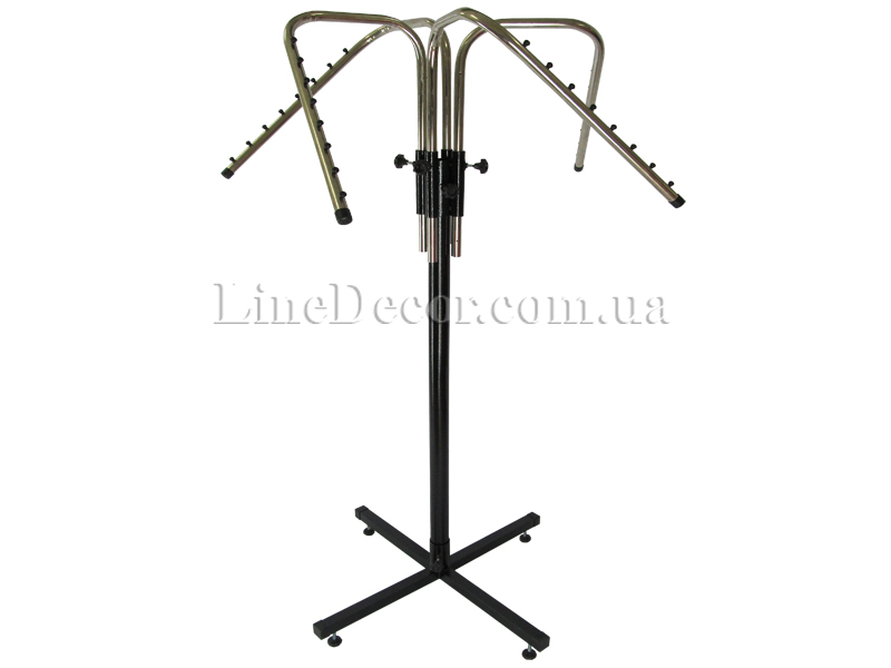 Стойка для одежды. Выставочное переносное оборудование. Стойка "Краб" на 4 рожка комбинированная, верхняя часть хромированная нижняя часть крашенная. На колесах . Высота стойки регулируется Описание: "Краб" 4х8 шариков Цвета Хром / Чёрный Высота 1000-1600 мм Ширина 1160 мм Купить можно по адресу г. Сумы Кооперативная 1 оф 707 Linedecor Пересылаем товар по Украине |