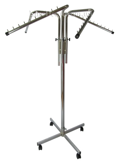 Стойка для одежды. Выставочное, переносное торговое оборудование. Стойка Краб на 4 рожка металлическая, хромированная. Производства Турция. На колесах. Описание: "Краб" 4х10 штырей Цвета Хром Высота 1300-1850 мм Ширина 1200 мм Купить можно по адресу г. Сумы Кооперативная 1 оф 707 Linedecor Пересылаем товар по Украине |