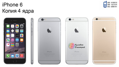 Предложение от интернет магазина Мир Смартфонов . Iphone 6 (4 ядра) копия. Все телефоны абсолютно новые в плёночках . Гарантия на все телефоны 1 год. Сервисный центр в Украине. Доступные цвета : черный, белый, золотой. Видео обзор и характеристики у нас сайте : http://world-smartphones.com.ua/smartphony-telephony/luchshaja-kopiya-iphone-6-android-4-yadra Контактные телефоны: 066-41-80-819, 096-15-51-474, 063-58-98-791 Мы всегда рады вам помочь . |