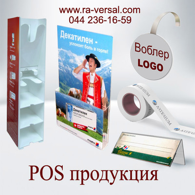 POS-материалы, используются для оформления мест продаж и выкладки товаров — стенды, воблеры, подставки под телефоны, флажки, ценникодержатели, подставки под посуду, декоративные магниты, подставки под чашки и кружки, календари, брендированные чашки, буклентицы и другие подставки под полиграфию, подставки под различную бытовую и цифровую технику, кружки, брелоки, линейки, блокноты, открытки и любые другие, интересующие Вас виды рекламной продукции.