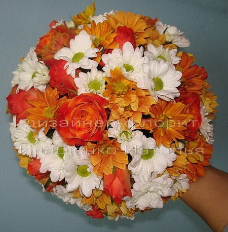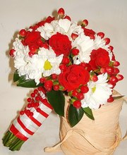 Букет в национальном стиле под заказ, свадебный букет круглой, каскадной формы в украинском стиле, цена на букет от 500грн, широкий выбор цветов |