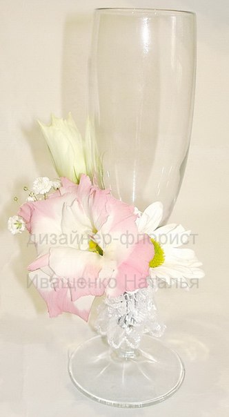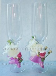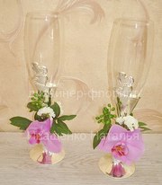 Цветочная студия Свадебный Мир принимает заказы на оформление свадебных бокалов, яркое дополнение к Вашему торжеству из живых цветов по ценам от 150грн за пару. Широкий ассортимент цветов и декора. |