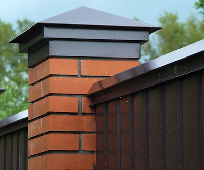КОЛПАКИ НА ЗАБОР (СТОЛБЫ) имеют 2 основные функции - это защитная и декоративная. Изготавливаются из таких металлов как: медь, сталь разнообразных цветов и покрытий. Существует более 10 видов форм колпаков на столбы, а так же угловые, т-образные, шестигранные и другие геометрически сложные. Колпаки для забора (колпак заборный) важный и очень значимый элемент, благодаря их способности отводить воду от поверхности кладки столбов. Установленный на столб забора, он защищает его от намокания. Конструкция устроена так чтобы нижняя часть (юбка), которая имеет выступы в виде капельников по несколько сантиметров с каждой стороны, не позволяла влаге, или воде в виде осадков стекать по основанию кладки. Не накрытый такой крышкой столб, подвержен намоканию, особенно в верхней части, при переходах через ноль от плюсовой температуры к минусу, происходит разрушение кладки из-за изменения объема влаги, попавшей в материал. Изготовленные по всем стандартам колпаки на столбы, колпаки на забор - это отличная защита и украшение лицевой части участка, неопрятный забор обычно диссонирует с красивым домом.