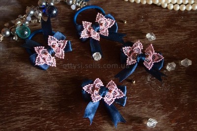 Набор "Английская классика" из 4 заколок для маленькой девочки, в сине-розовой гамме - 2 заколки (тип "крокодильчик") - 2 резиночки |