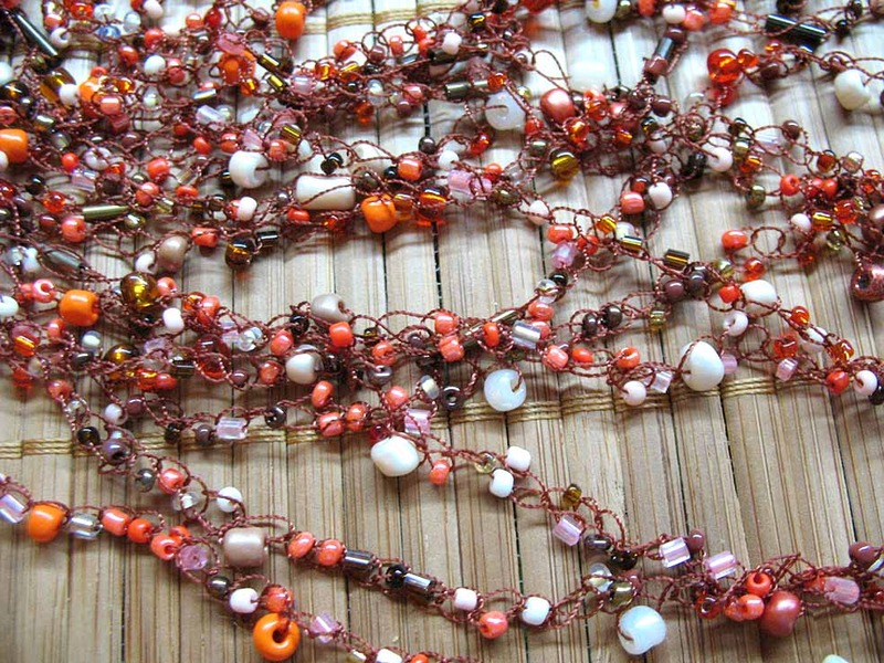 Нежный микс из бисера разного калибра и цвета, нанизанный на крепкую нить, станет прекрасным дополнением Вашего гардероба, а с помощью тесемочек-завязок Вы легко отрегулируете необходимую длину ожерелья :).