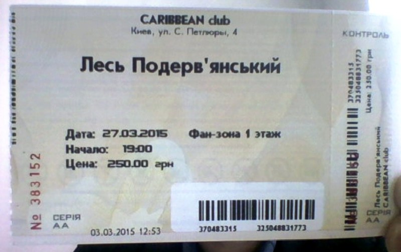 Продам билет на Леся Подервянского. 27 марта 2015, 19:00 - Билеты на концерты