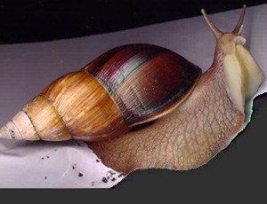 Улитка ахатин достигает размера 20-30 см. Это достаточно простой для содержания вид домашнего любимца. Они неприхотливы в еде, питаются разнообразными фруктами, овощами. Любят травы, а также продукты, имеющие кальций (яйца, сыр, мел и т.д.). В случае отсутствия пищи и пересыхания помещения улитка засыпает, поэтому вы можете без проблем ее оставить одну на время отпуска. Простота содержание делает его замечательным животным для детей и занятых людей.