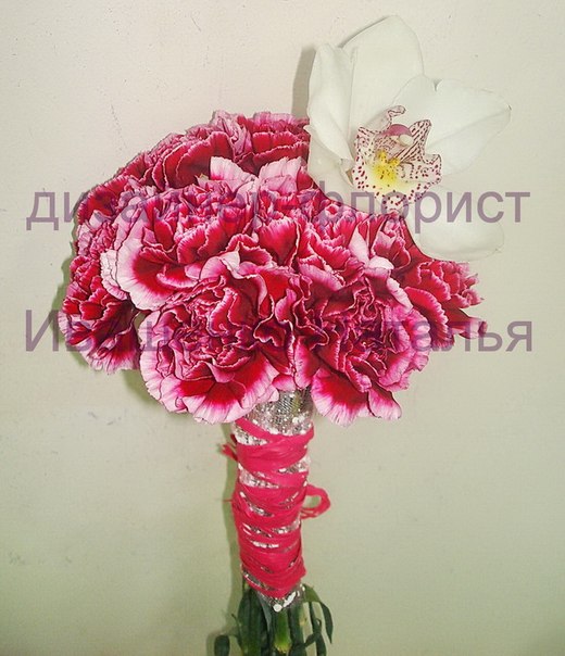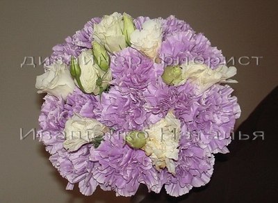 Шикарные свадебные букеты из гвоздики под заказ в Киеве, букет круглой формы с ароматной гвоздики подчеркнет образ невесты и дополнит свадебную церемонию необычайным нежным видом. Цена на букет от 550грн. |