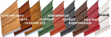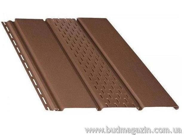 Панели Софит изготовлен без перфорации и с перфорацией по центру. Цветовая гамма софитов BRYZA представлена широким спектром цветов: белый, коричневый, красный, графитовый, зеленый, кирпичный (терракотовый), золотой дуб, орех и золотой орех.
