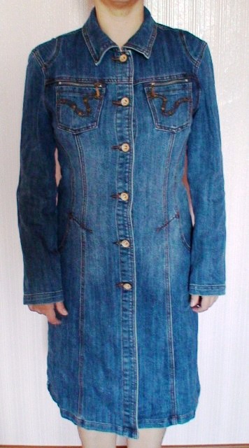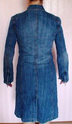 Джинсовый плащ Sabre Keel весна-осень. Размер 44. Состояние близко к новому. Длина изделия-101 см, дл.плеча-15 см, дл.рукава-62 см, обхват талии (полный)-88 см. Материал cotton – 95%, elastic – 5% |