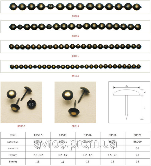 Гвоздевая лента диаметр 9,5мм цена от 30 грн/м.п. Декоративные гвозди цена от 30 грн.