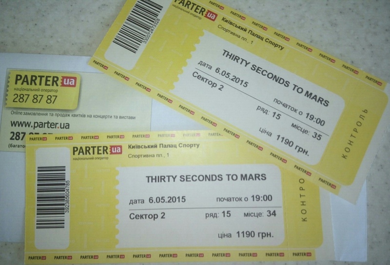 Продам 2 билета на 30 seconds to Mars, концерт 06.05.2015, Киев - Билеты на концерты