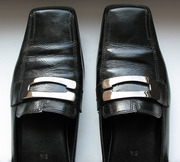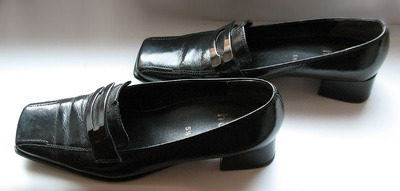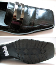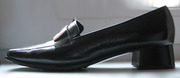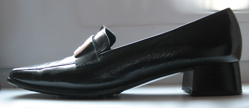 Натуральная лаковая кожа, устойчивый низкий каблучок, удобная форма, пряжка из темного металла.