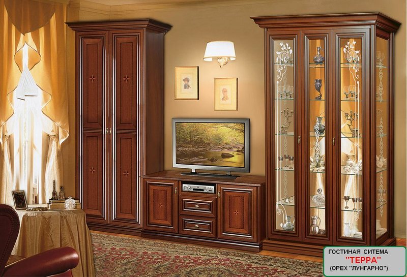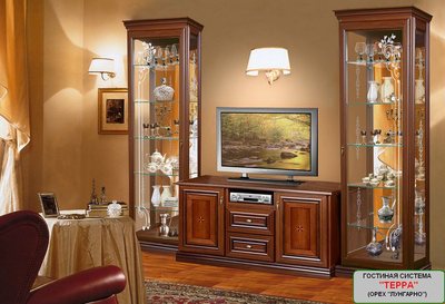 Фабричная гостиная стенка "Терра" (ф-ка "Скай", Украина), новая, в фабричной упаковке, корпус: орех "караваджо", фасады МДФ лакированные: орех "Лунгарно" и беж "Гоа", стекло с фацетной обработкой, реализуется по элементам. Мебель производится на современном высокотехнологическом оборудовании концерна HOMAG Group AG (Германия), с использованием исключительно высококачественной ламинированной ДСП, МДФ. Продукция имеет гарантию согласно ГОСТам Украины. ТУ У 36.1-34442700-001:2011.