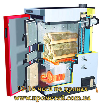 • Пиролизный котел топится только дровами, но благодаря устройству этих котлов дрова горят до 16 часов, а не 3-5, как в обычных твердотопливных котлах.