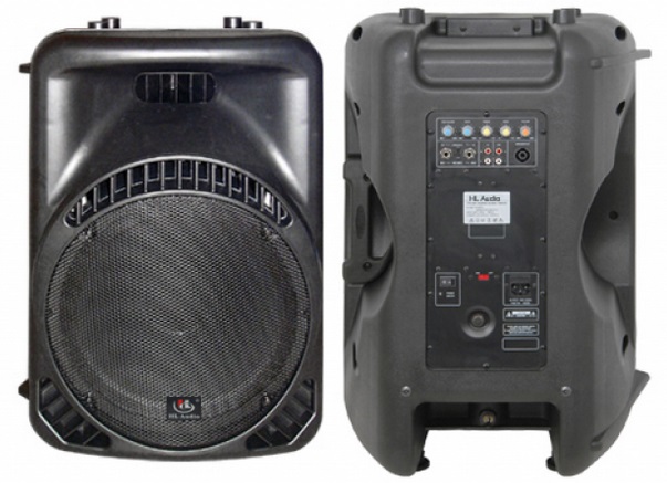 HL Audio MACK 15 A - активная 2-полосная акустическая система; НЧ 15"+ ВЧ 1.38" (титановая диафрагма); мощность 285 Вт RMS; встроенный усилитель 250 Вт; частотный диапазон 35 Гц-20 кГц; чувствительность 103 дБ; 2 x 1/4` входа, 2 x RCA In/Out; 1 x Speakon выход для подключения пассивной АС |