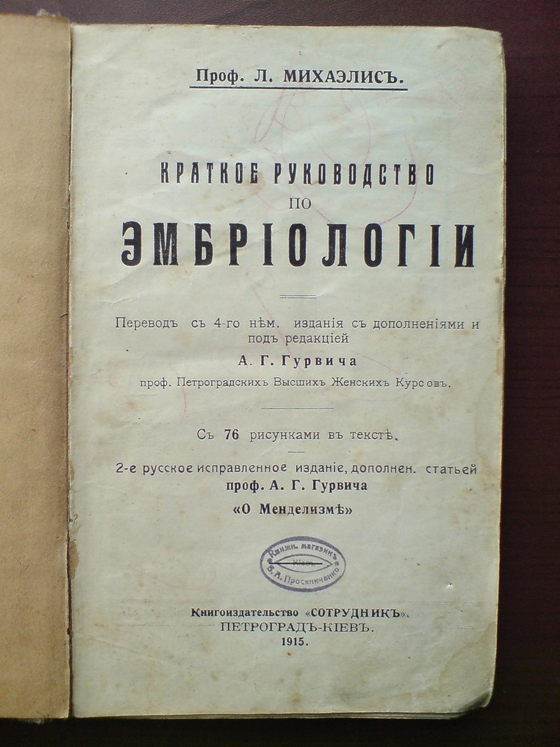 Руководство по эмбриологии 1915г. С 76 рисунками. - Антикварные книги, манускрипты