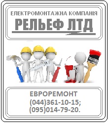 Выполним евроремонт в Вашем доме, офисе, квартире. Отделка, сантехника, электромонтаж. Качественно, оперативно, по доступным ценам. На свои работы даем гарантию. Так же предоставляем услуги по обслуживанию Вашей электросети. Тел. (044)599-29-71 (095)014-79-20 (096)257-42-00 Сайт: 220gs.com |