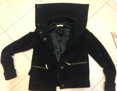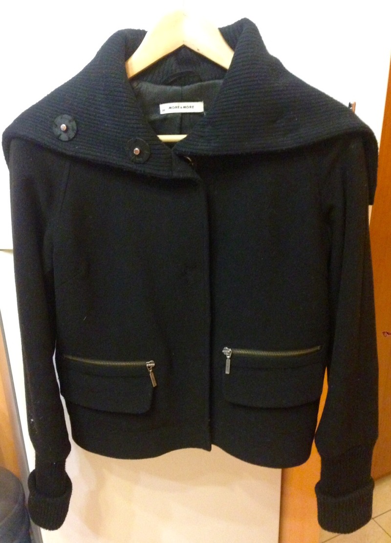Осенняя тёплая куртка 60% шерсть, 30% полиэстер, 10% вискоза Длинный ворот и рукава, на пуговицах, 2 кармана на молнии Куплена в Германии |