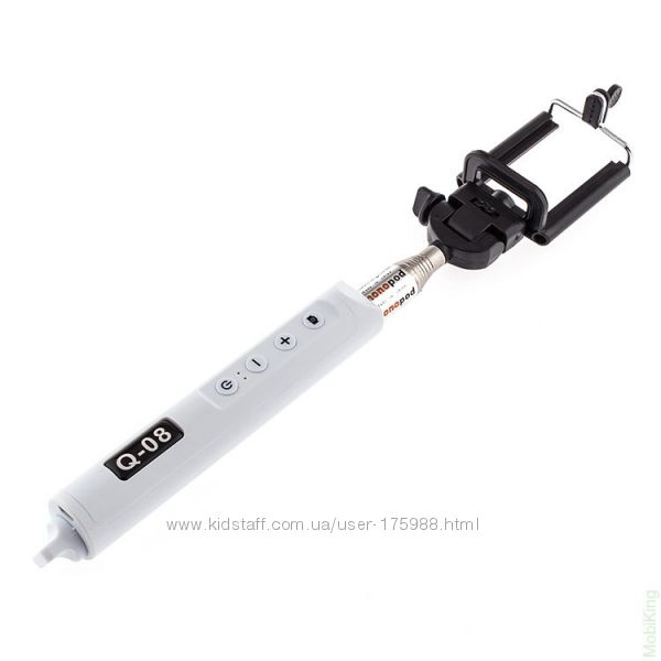 Держатель выдвижной для selfi Monopod Q-08 White +Bluetooth кнопки с Zoom