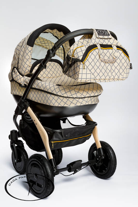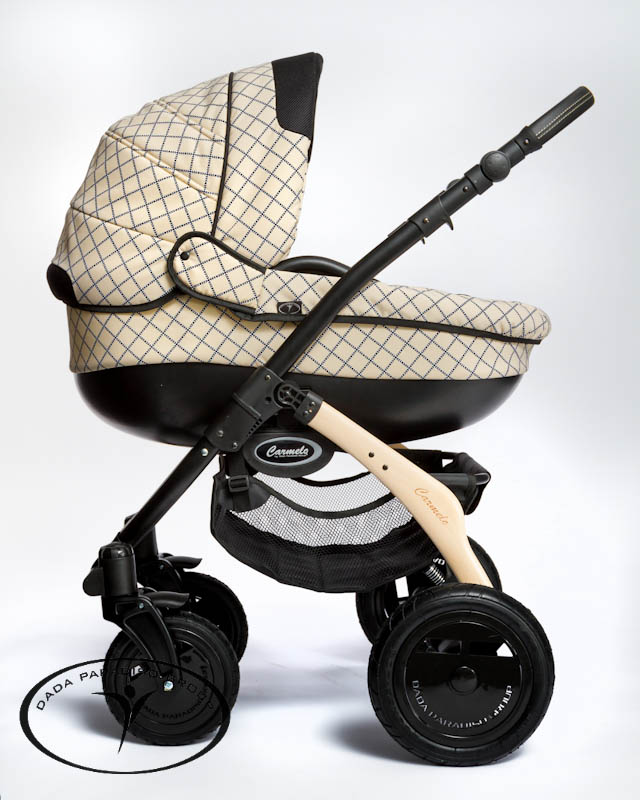 Детская универсальная коляска 3 в 1 Dada Paradiso Group (DPG) Carmelo - новаторская идея, которую воплотили в реальность лучшие дизайнеры и техники из Dada Paradiso Group. Такого еще не было! Элемент из сверхпрочного дерева в форме бумеранга в раме коляски! Деревянная деталь сделана из дерева (порода буковых), и обработана специальным составом, который делает дерево супер-прочным и очень долговечным.