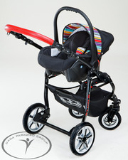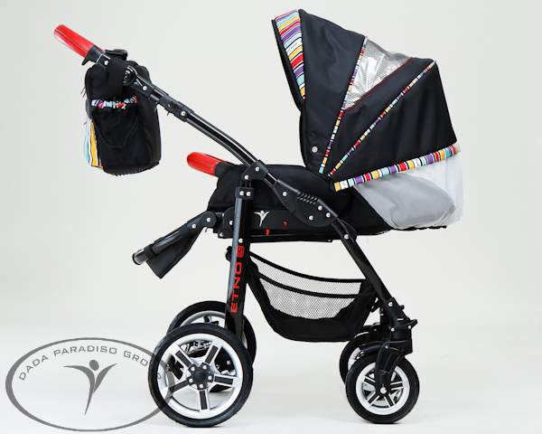 Детская универсальная коляска 2 в 1 Dada Paradiso Group (DPG) Etno Paski. C такой яркой, жизнерадостной коляской атмосфера этно-фестиваля будет сопровождать вашу семью всегда и везде. Весёлые полосочки, как на юбке у польской панночки, будут дарить прекрасное настроение и маме, и ребенку.