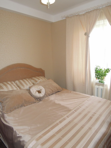 Продается двухкомнатная квартира в Киеве, Днепровский район, ул.Харьковское шоссе 6 (м.Левобережная, м.Дарница). Дом панельный, лифт новый, рядом магазины маркет (Фора, Билла, Новус). Общая площадь: 48 м2. Спальня 11м2, зал с эркером 22м2, кухня 7,5м2. Этаж: 5, этажность дома: 9. Квартира после полного ремонта с дизайнерским интерьером и качественными отделочными материалами: 1) двойные стеклопакеты металлопластик; 2) новый пол (замена пола до плиты); 3) плиткой выложены: коридор, кухня и воротник стена кухни, ванна стены и пол, сан-узел стены и пол; 4) полностью заменена сантехника: новые трубы, счетчики, бойлер, ванная, вентиляторы, раковина, смесители...все новое; 5) новая электрика, кондиционеры в двух комнатах; 6) новые двери межкомнатные, входная (дверь в тамбуре). Кухня: с мебелью (возможно или без) столешница деревянная, посудомоечная машинка, холодильник. Спальня, зал: кондиционер CH, стены тканью, линолиум. Зал: кондиционер CH, на полу линолеум и ковролин, стены затянуты тканью, скруглена арка, пластиковые окна в эркере, потолок выравнен и покрашен. Коридор: пол выложен плиткой, стены крашеные, звонок регулируемая громкость, домофон (возможно видео). Балкон - без ремонта. Первые хозяева квартиры. Документы все чистые и готовые к продаже, приватизированная, без детей. Посредников просьба не беспокоить! Разумный торг уместен! Просмотр по предварительному звонку. 2-х комнатная квартира в Киеве Днепровский район цена 57 900 $.
