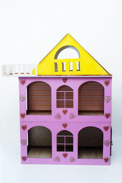 Домик для куколок изготовлен из 3мм. ДВП, дерева и ламината. Окрашен акриловой водоэмульсионной краской на водной основе в 2 слоя и сверху вскрыт лаком на водной основе. Все материалы безопасны и не токсичны для здоровья детей